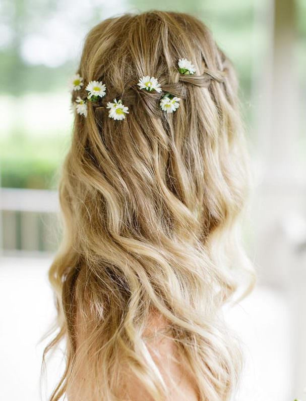 As mini-margaridas combinam com a trança cascata, de ar levemente despojado: