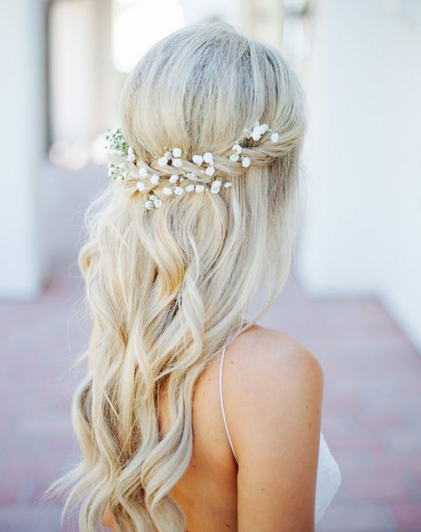 As gypsophilas finalizam o penteado meio-preso com torcidinho: