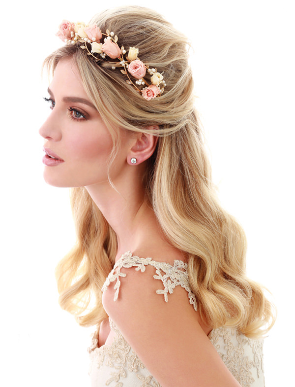 Mais uma do nosso editorial “Love in Bloom” – rabo de cavalo com topete, finalizado com coroa de flores naturais: