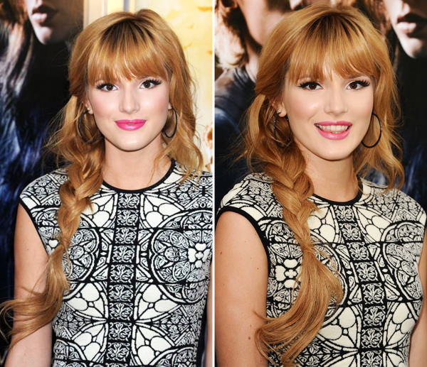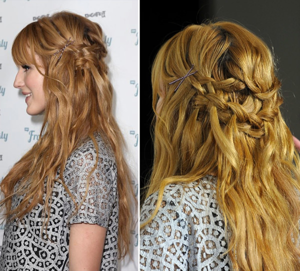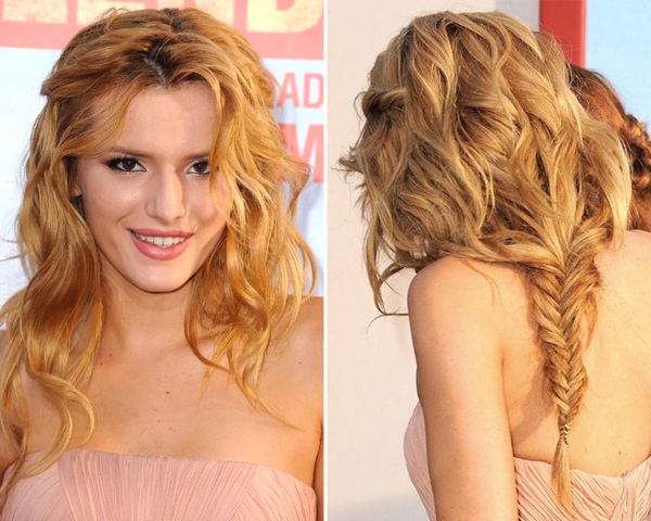 Em duas ocasiões, Bella usou trança lateral escama de peixe com fitas. O resultado é um look moderno e divertido: