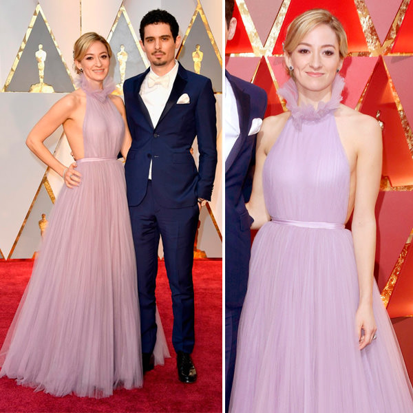 A gola alta em tule, como todo o vestido Marchesa de Olivia Hamilton, é leve, mas também perfeito para as fashionistas: