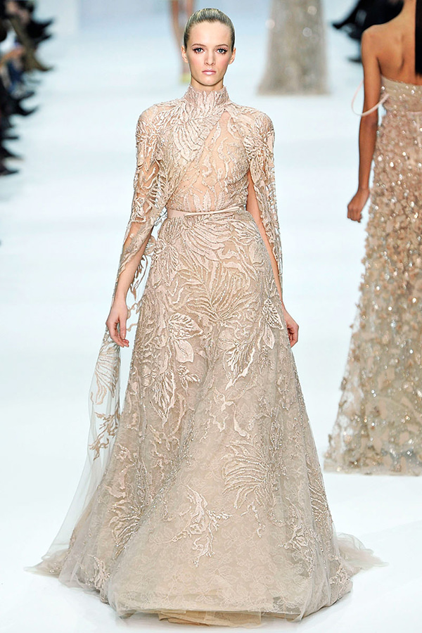 Que tal gola alta + capa? Essa é a proposta glamourosa de Elie Saab: