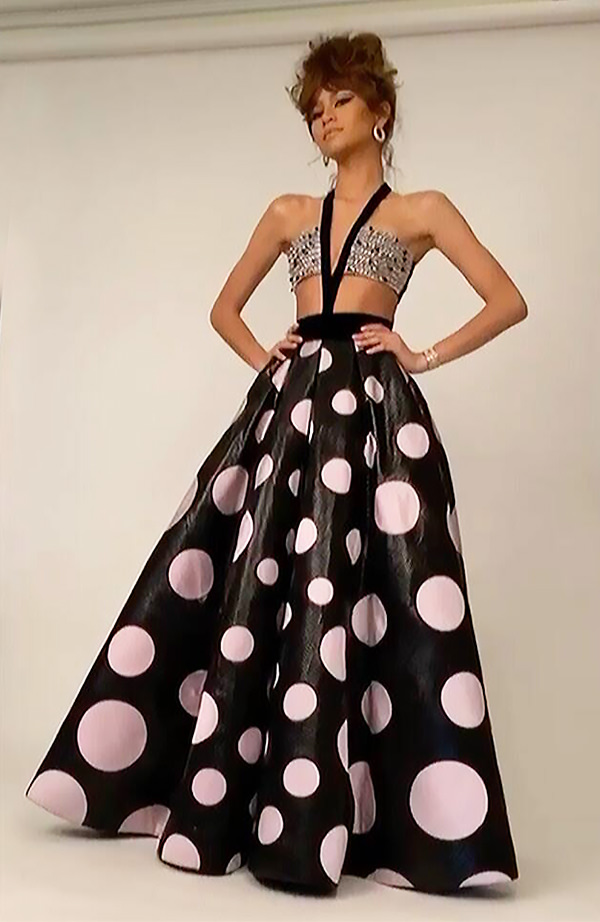 Como faz questão de fugir do óbvio, ela já apostou em top cropped, look colorido, cauda + capa e por aí vai… Mas entre as escolhas de Zendaya também há vestidos clássicos e até minimalista. Confira ver nossa seleção: