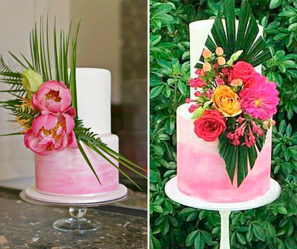 E para quem quer um ar mais moderno, vale combinar a tropicalidade com geometria – em bolos mais discretos ou mais impactantes: