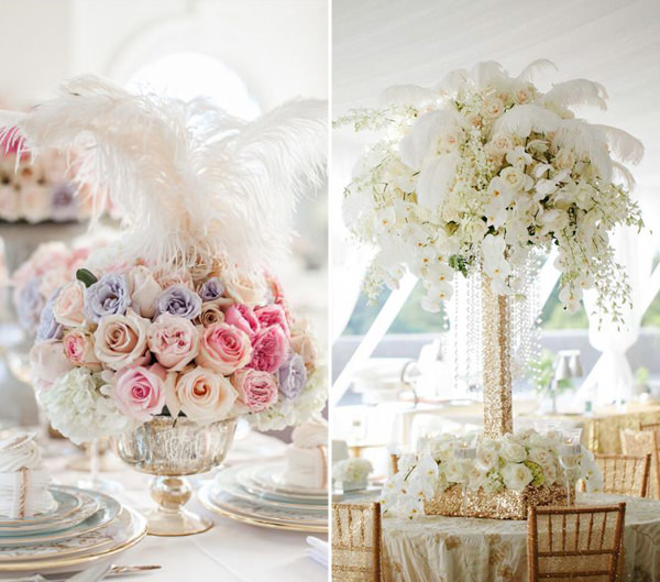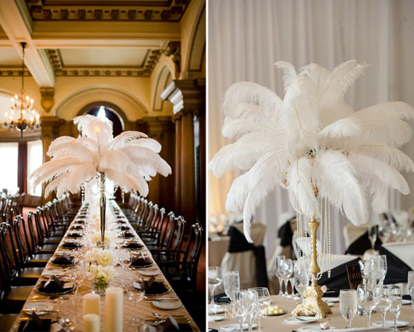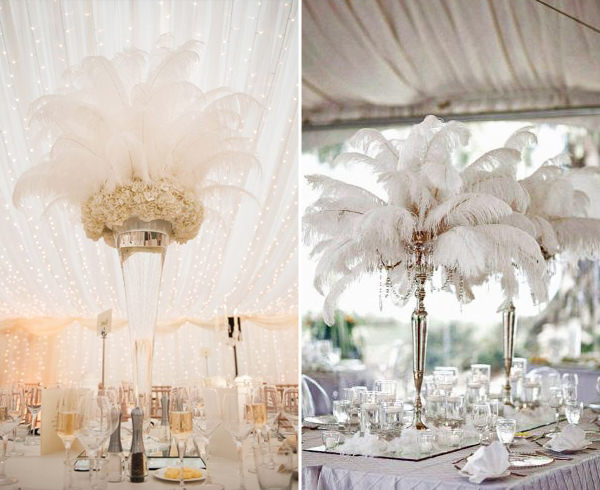 Penas de diferentes estilos podem fazer parte também da decoração da mesa:
