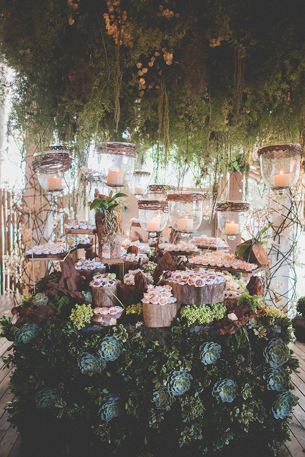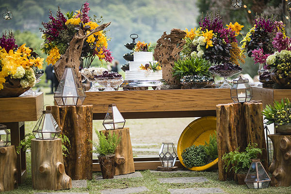 Para quem quer uma festa de 15 anos com clima de jardim encantado, uma boa ideia é apostar na decoração com troncos. O elemento sempre dá um toque rústico ao espaço, mas pode ser usado de diferentes maneiras: como bandeja de doces, suporte para o bolo, vaso, castiçal… São várias ideias, e criatividade não falta! Olha só nossa seleção: