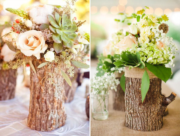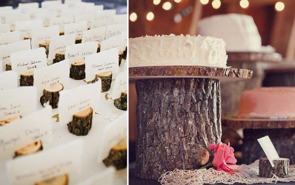 Mini-troncos como place cards ou suporte para as plaquinhas dos doces: