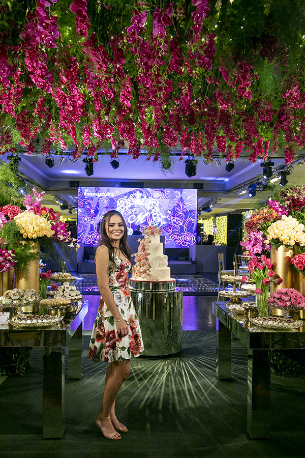 Como todas as suas festas tinham sido temáticas até então, para o dia da festa de debutante a Marcela não quis pensar em um tema, mas sim em cores. “Devido ao seu estilo romântico queríamos algo mais tradicional e com muitas flores. Em um dia das mães, ela me deu um buquet simples, mas com uma combinação de cores que achei muito linda e foi essa nossa inspiração: branco, tons de rosa e verde”