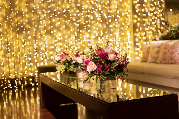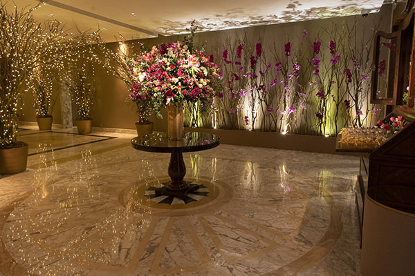 A festa de Marcela aconteceu no mesmo espaço da festa de debutante da mãe e quem recebeu a missão de colocar em prática todas as ideias da aniversariante foi Cristiane Pileggi, que fez a assessoria e assinou a decoração da festa. Cristiane Pileggi apostou em arranjos florais exuberantes, com muitas tulipas, rosas e orquídeas em diferentes tons de rosa, que trouxeram o romantismo para o espaço. Ao redor de todo o espaço, uma grande cortina de luzinhas trouxe ainda mais charme ao projeto.