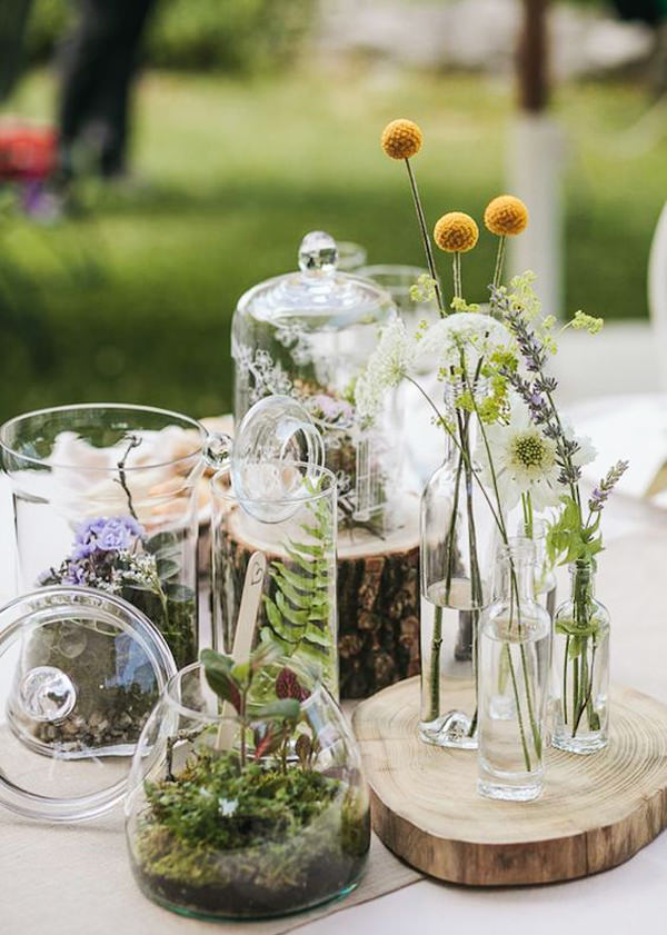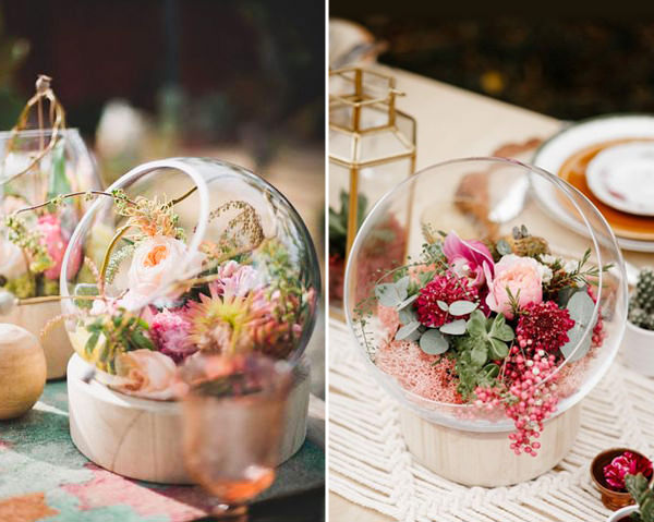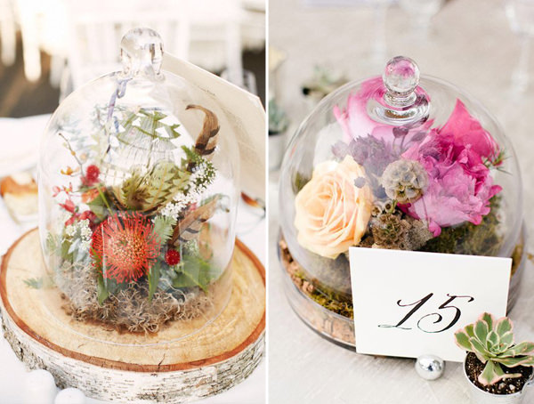 As redomas, que podem ser combinadas a troncos, livros, etc., também dão um toque super charmoso à ambientação: