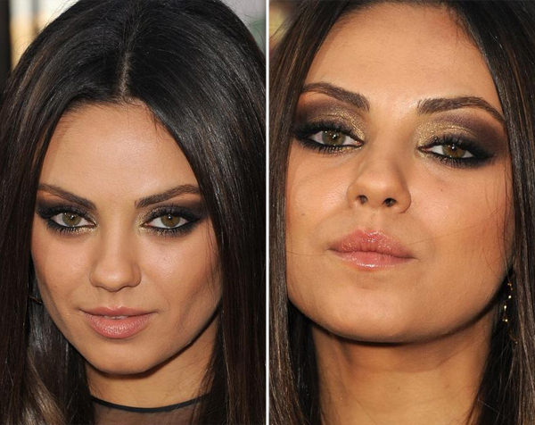 Em preto e dourado, a make de Mila Kunis é super poderosa: