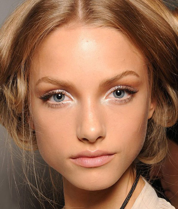 Aqui, o lápis branco foi esfumado no canto interno dos olhos, criando um ponto de luz na maquiagem. Para completar, sombra cintilante: