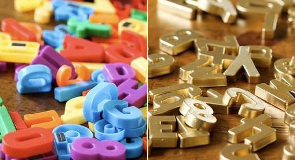 O DIY com spray dourado é o mais fácil e prático. Aqui, foram usadas letras pequenas, mas também dá para fazer com peças maiores!