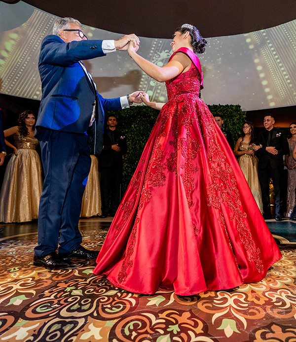 Depois de tanta emoção, estava na hora da agitação! Duda sempre sonhava com uma abertura de pista impactante, e não mediu esforços pra isso! “Queria a abertura de pista com todos os meus amigos e amigas. Então, o coreógrafo e bailarino Rafael Caristo montou uma coreografia com todo carinho! Depois disso, o DJ Deaz (Grupo Bisutti Sweet 15 Guide