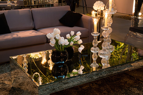 Os móveis espelhados e em acrílico, da 100% Eventos Sweet 15 Guide