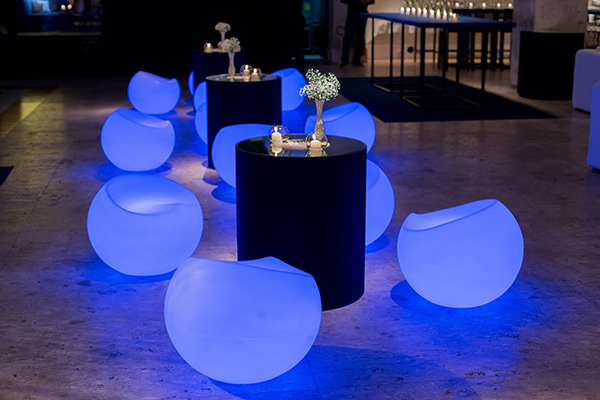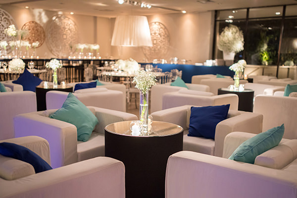 O lounge da festa ganhou pufes de LED, que deram um toque moderno à decoração: