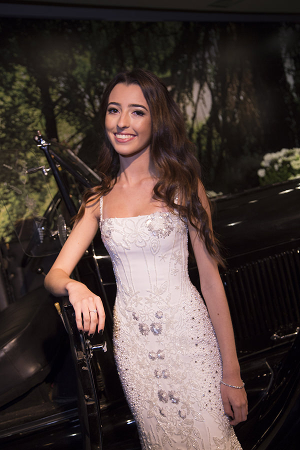 Junior Santaella foi o responsável pelo vestido da debutante. “A Ju sabia como queria que fosse a modelagem do vestido, e a sintonia dos dois foi tão perfeita, que, em 15 minutos, o croqui estava pronto. E não mudamos um item sequer!”, diz Monica. O resultado foi um vestido branco ajustado ao corpo, todo coberto por bordados e aplicações. Para complementar o look, Julia optou por cabelo solto e maquiagem leve.