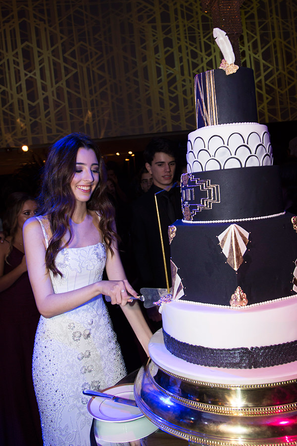 O Grande Gatsby foi o tema da festa de Julia Coutinho, que sempre sonhou em comemorar os 15 anos em grande estilo! “A Ju sabia que não queria nada romântico. Partimos, então, para uma pegada mais glamourosa, como a do filme, remetendo às festas fantásticas que Gatbsy dava. A ideia foi amadurecendo, a Ju acabou gostando das referências e se decidiu pela pegada anos 20!”, conta a mãe, Monica.