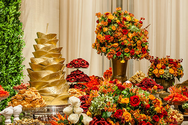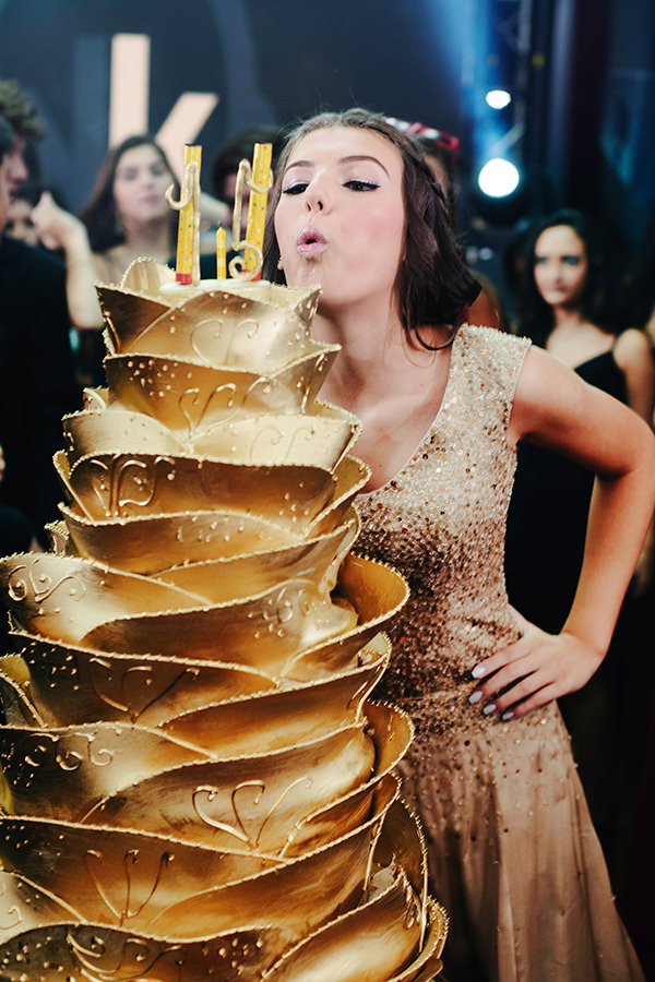 Outro sonho de Nicole é conhecer a Casa de Julieta, em Verona, na Itália, que acabou se tornando o tema da decoração! “Depois de muitas reuniões, chegamos à decisão final. E quando entrei na festa, fiquei encantada. O resultado ficou de tirar o fôlego!”, conta. Para tornar tudo mais prático, Nicole decidiu usar um vestido 2 em 1. “Quando fui ao atelier da Carol Hungria, já tinha o modelo em mente: dourado, bordado com cristais e paetês“, explica.