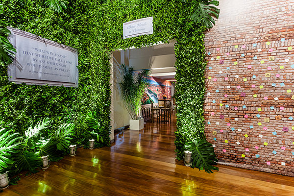 Foi montada uma parede de tijolos, onde os convidados podiam deixar mensagens para a debutante – assim como os visitantes deixam cartas de amor na Casa de Julieta!