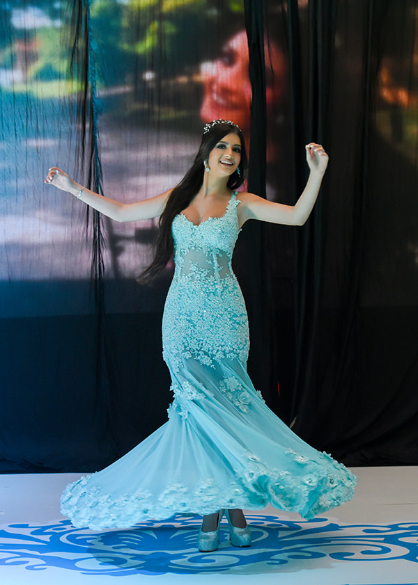 Durante a festa, a debutante usou três looks, todos assinados por Israel Valentim Sweet 15 Guide