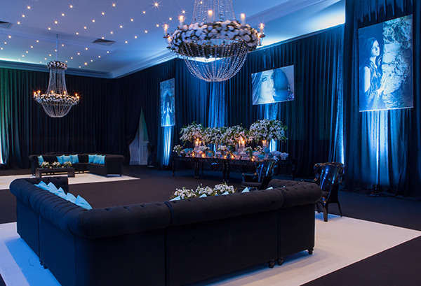 Os móveis em preto da 100% Eventos Sweet 15 Guide