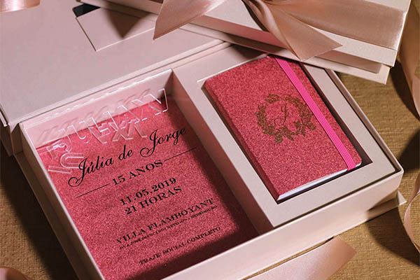 Além de desenvolver toda a papelaria da festa de 15 anos, a Eduardo Convites agrega a seus serviços o desenvolvimento de gifts personalizados para o grande dia, como rasteirinhas, save the date e as mais variadas ideias que combinem com a proposta da festa, uma solução completa para os seus clientes.