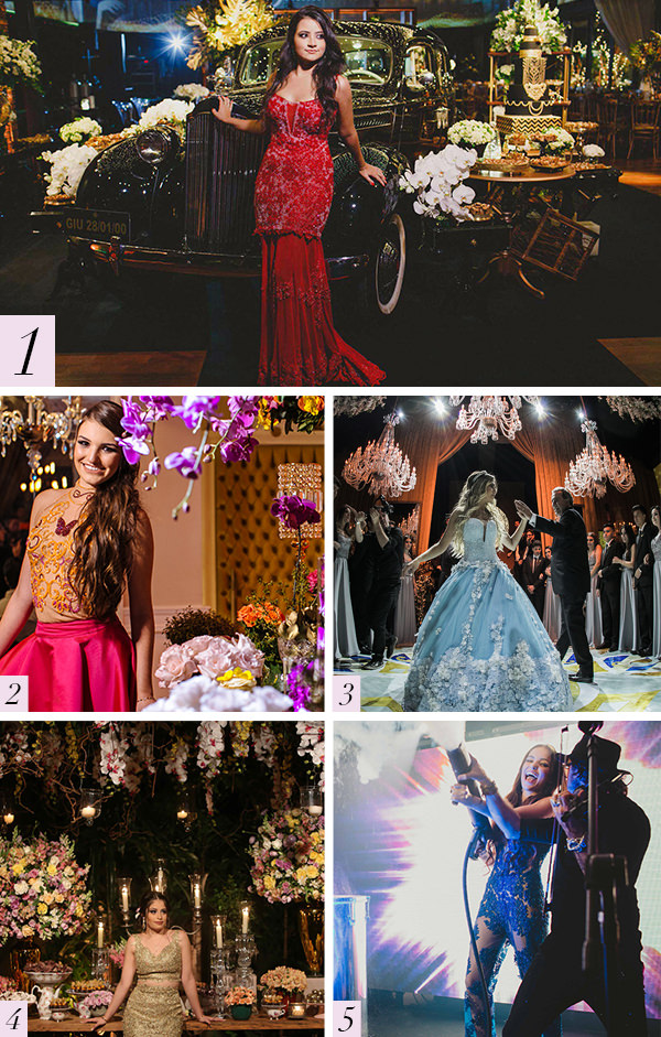 1. Giulia Machado: Giulia sempre quis comemorar o aniversário em grande estilo – e assim foi! E apesar de ser uma festa de 18 anos, a inspiração também vale para as debutantes! Durante os preparativos, que duraram um ano, a aniversariante contou com a assessoria da Jah! Eventos Sweet 15 Guide